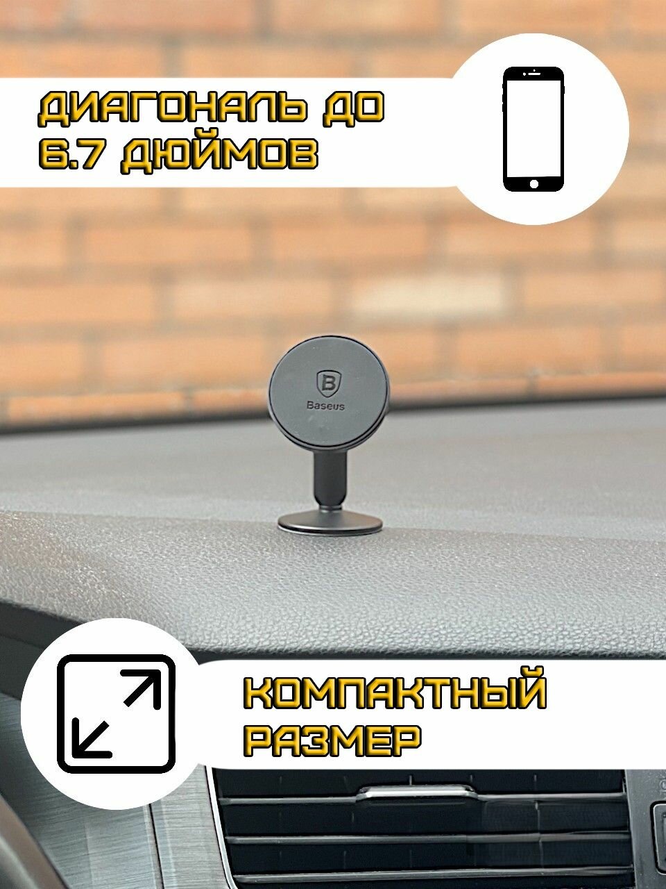 Держатель для смартфона в авто "Baseus Suyzd-0S" сверх сильные магниты, на панель приборов
