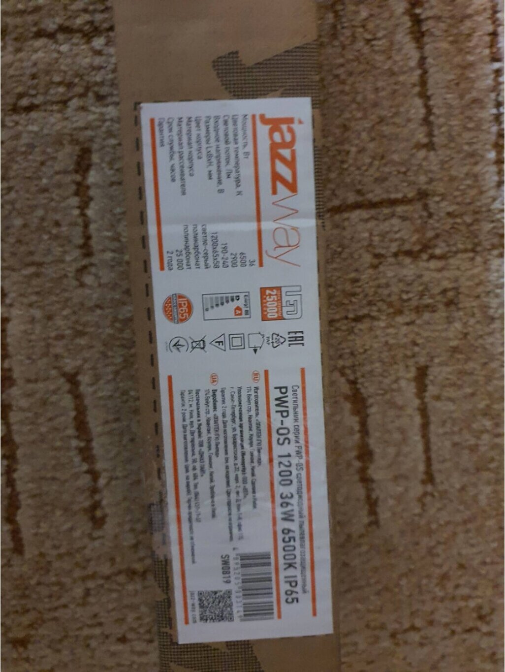 Светильник Jazzway Pwp-os 1200 36w 6500K IP65 190-240V, 50Hz/E 5003149 .