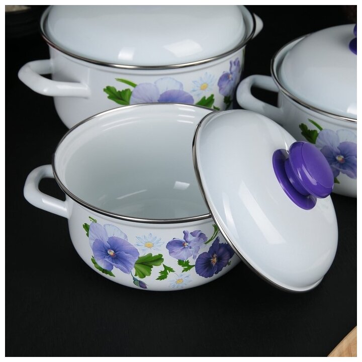 Набор кастрюль "Лысьвенские эмали" "Лаванда", эмалированная сталь 1,5л.; 2л.; 3л.