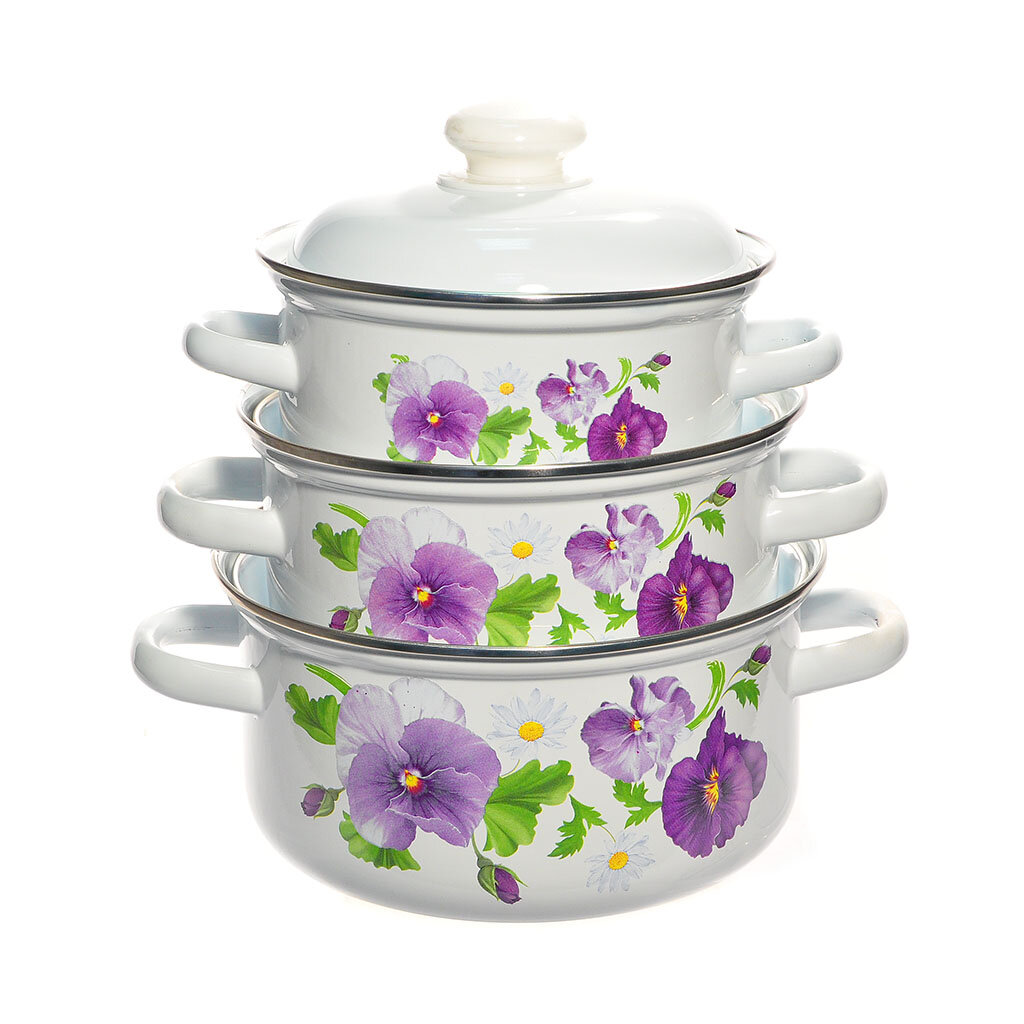 Набор кастрюль "Лысьвенские эмали" "Ласковый май", эмалированная сталь 1,5л.; 2л.; 3л.