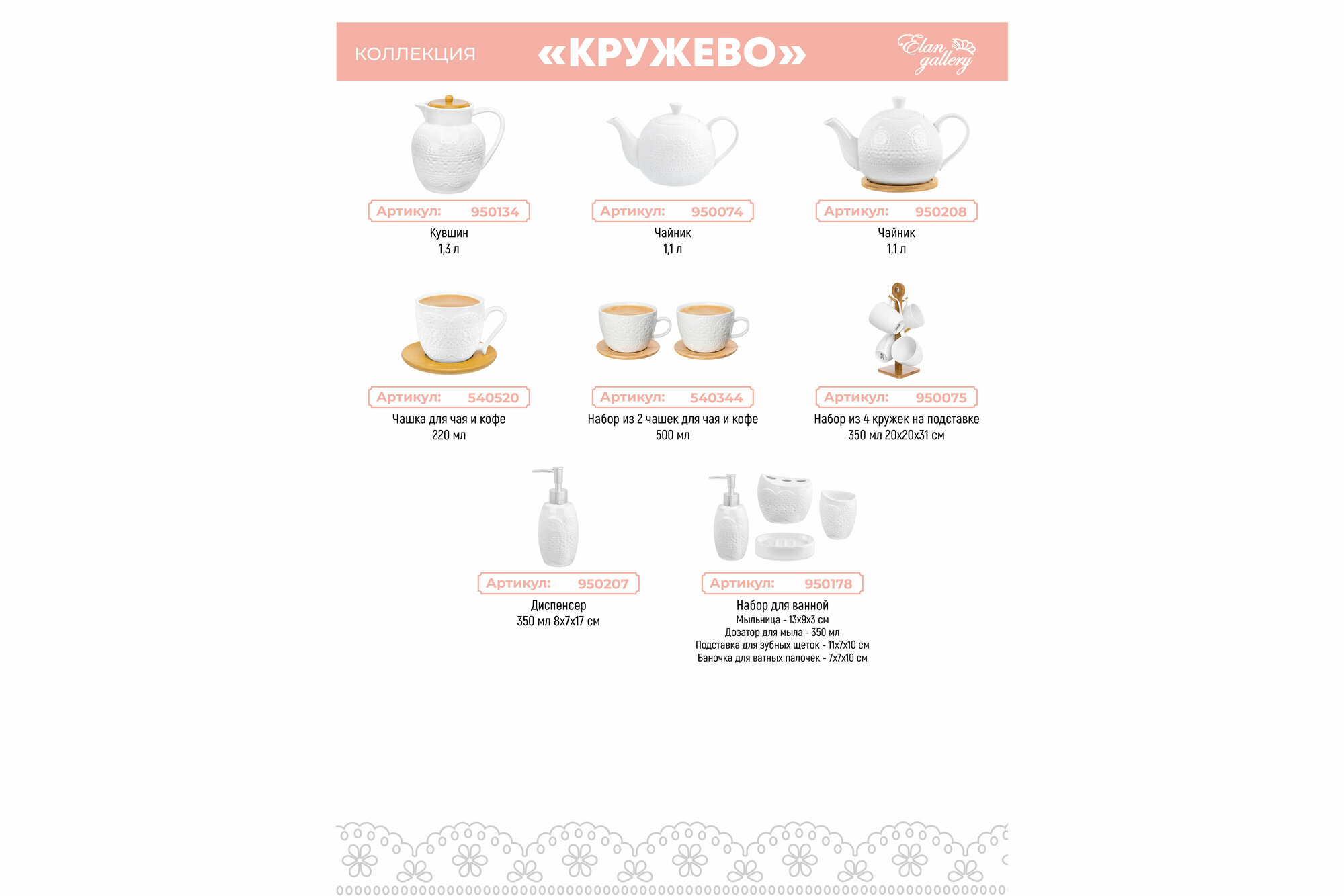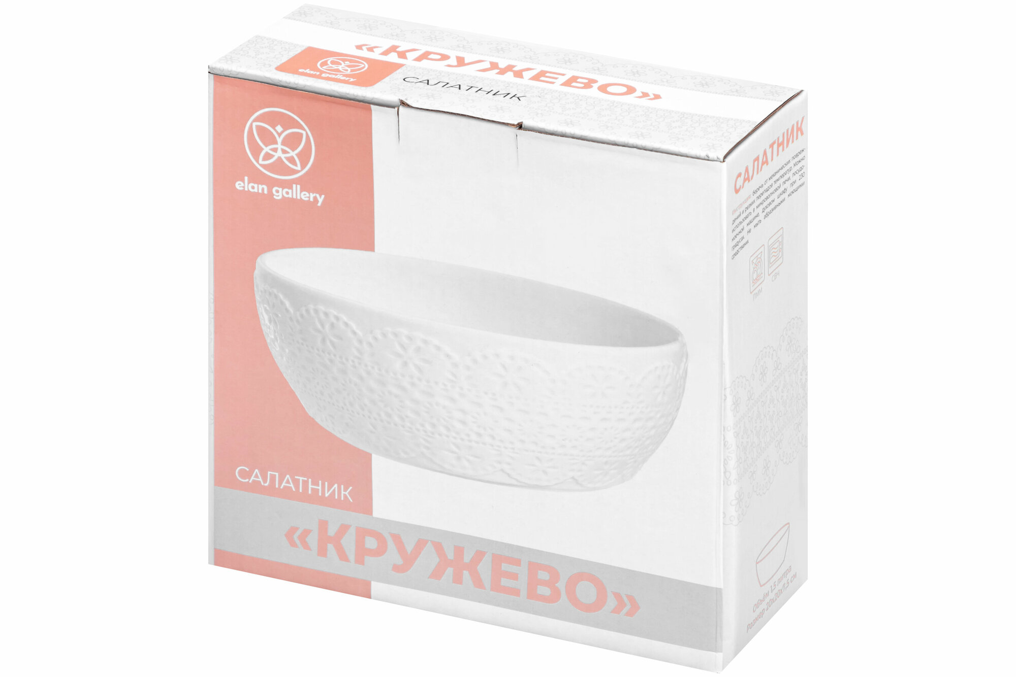 Салатник 1,5 л Elan Gallery "Кружево" 20*20*7,5 см интересное: