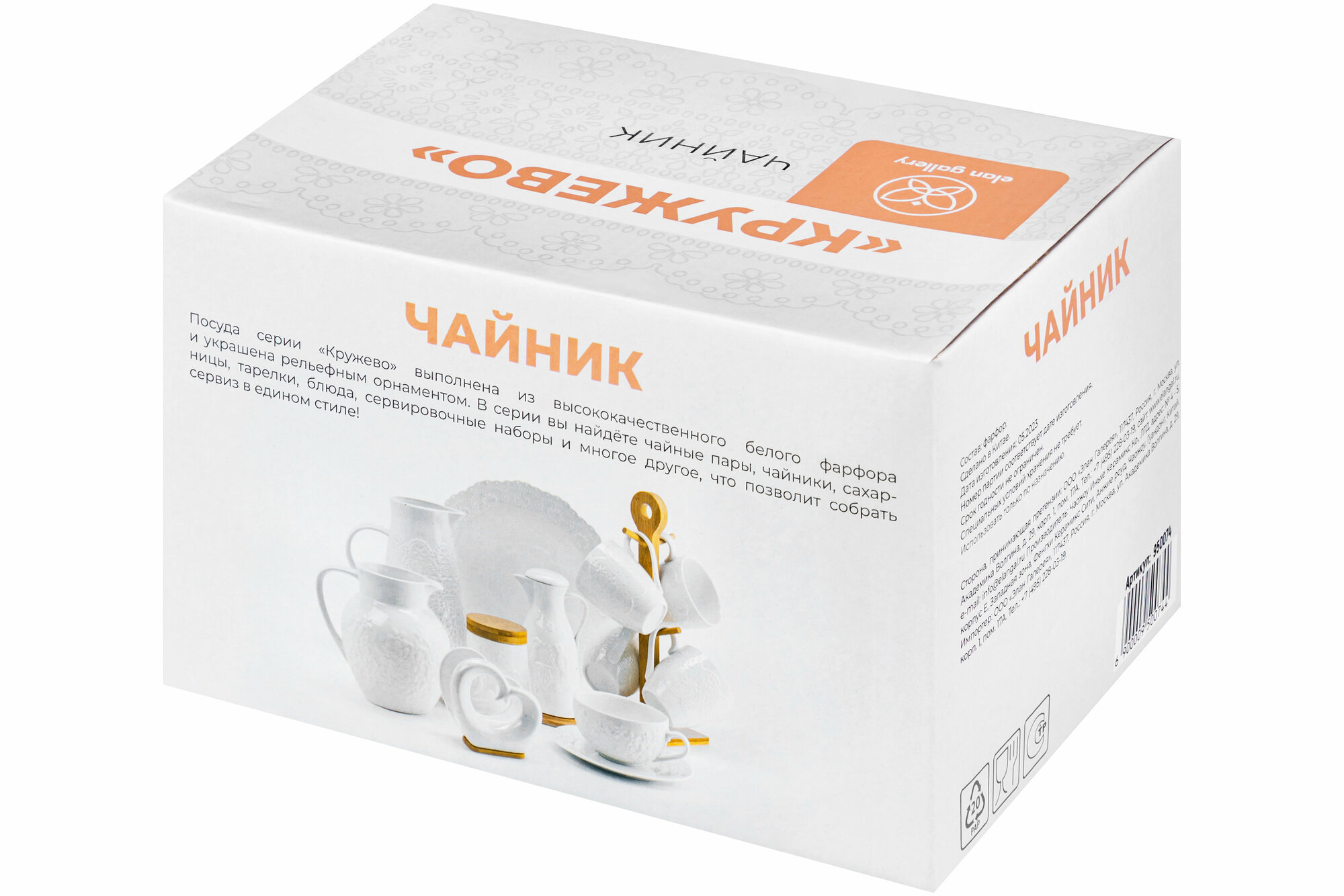 Чайник Кружево 1,1л, фарфор интересное: