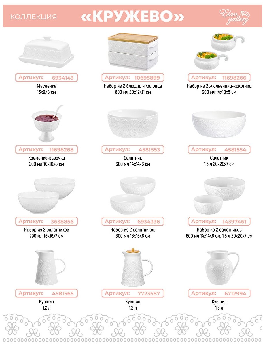 Чайник фарфор 1100 кружево белый элан