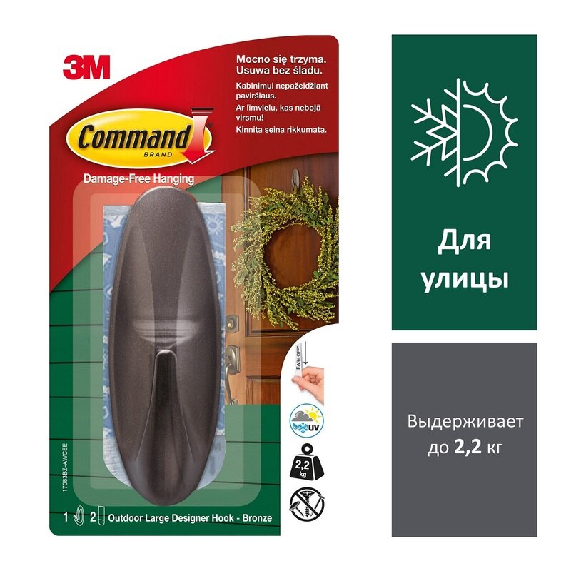 Дизайн крючок Command outdoor (17083BZ-AWCEE) большой 1 шт интересное: