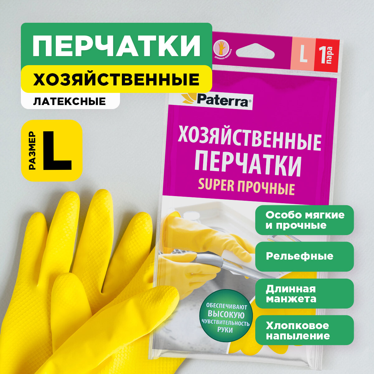 Перчатки резиновые PATERRA Супер прочные, р-р. L