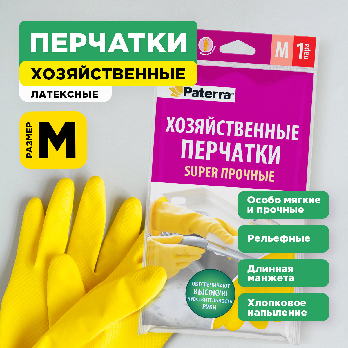 Перчатки резиновые SUPER прочные, PATERRA, р-р M