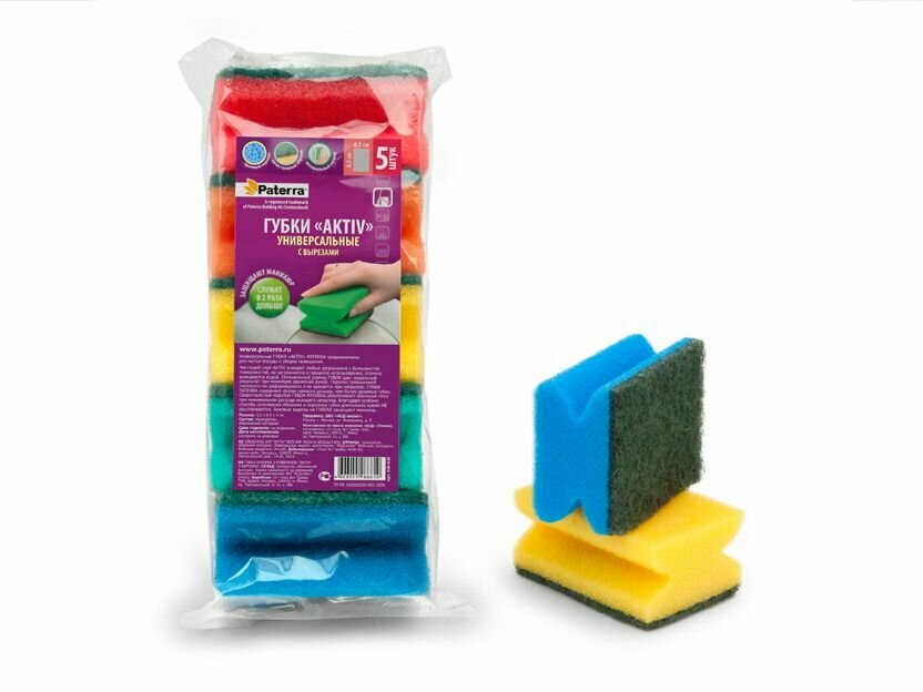 Губки кухонные AKTIV с вырезами 65*85*40мм "Paterra" 5 шт