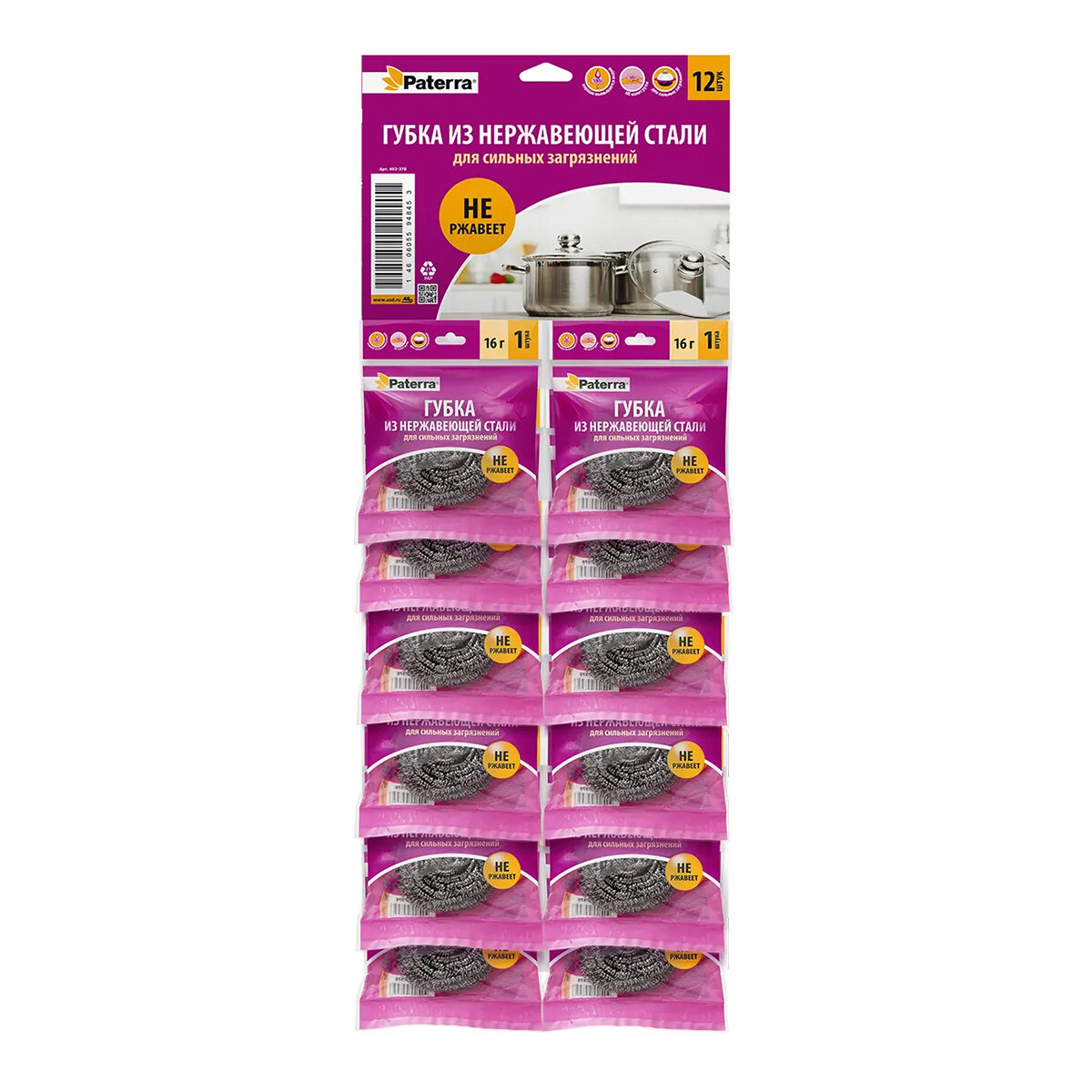 Губки для посуды PATERRA 1шт Металлическая, 12шт на блистере