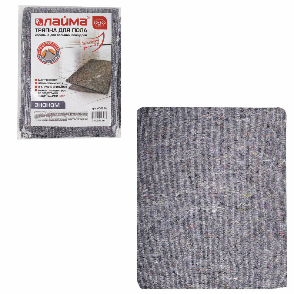СохранитьЛайма Тряпка для мытья пола 80х100 см, плотность 180 г/м2, ХПП, 80 хлопок, 20 полиэфир, , 600836 интересное: