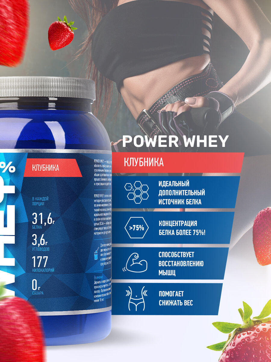 Протеин сывороточный RLINE Nutrition Power Whey 75%, Клубника, 1700 г