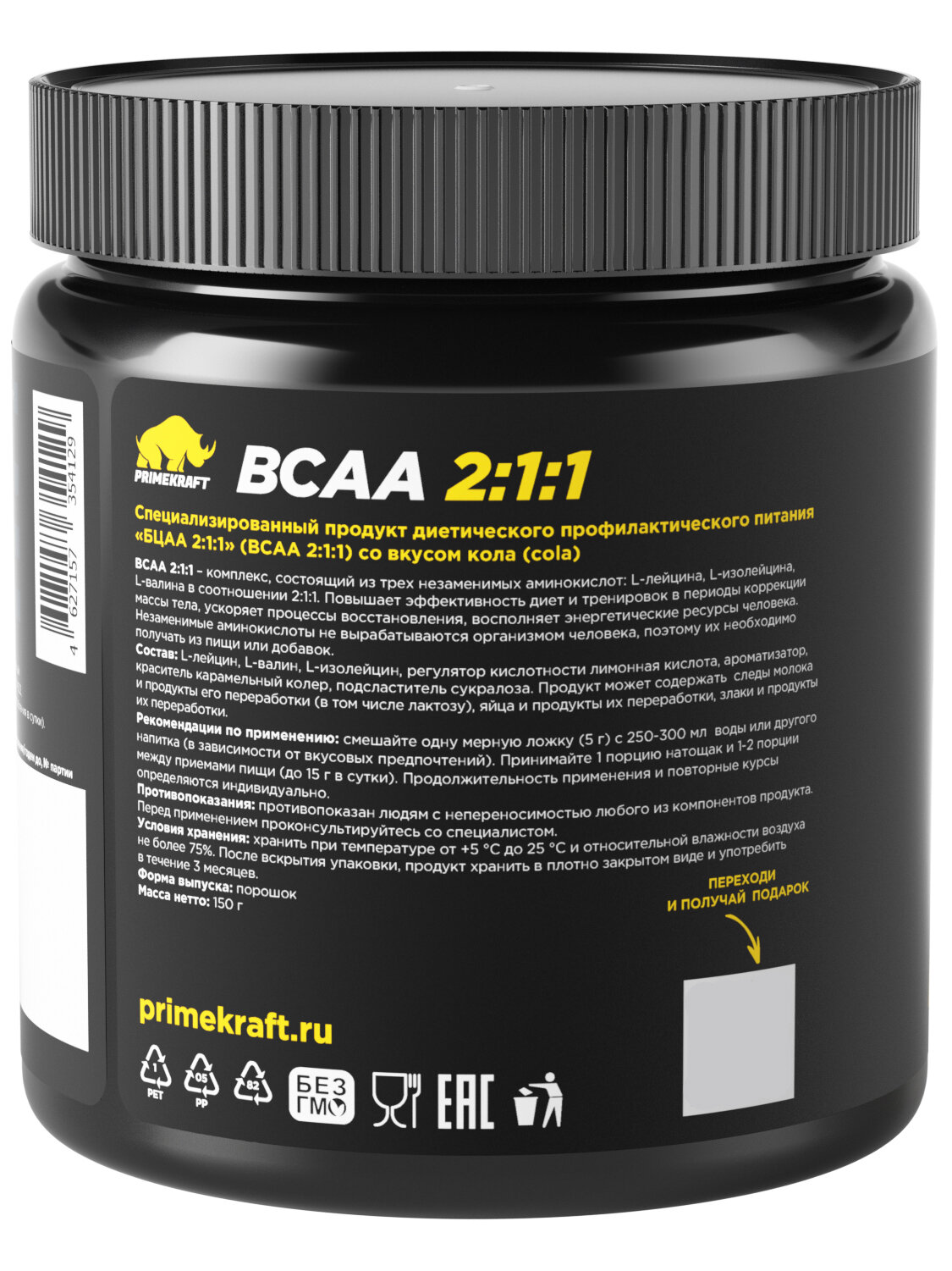 Купить Аминокислоты PRIMEKRAFT BCAA 2:1:1 (БЦАА) Кола, 150 г / 30 порций