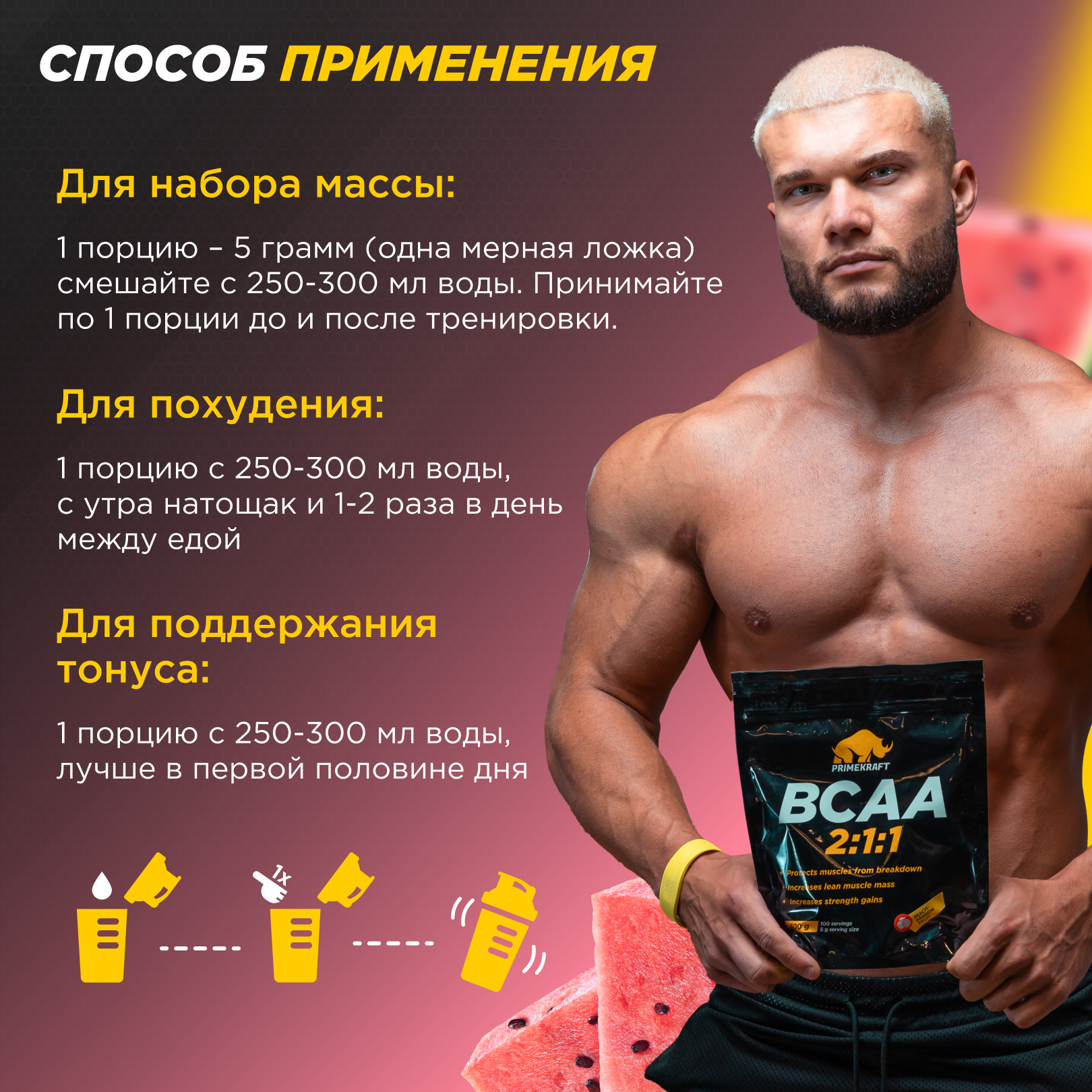 Аминокислоты PRIMEKRAFT BCAA 2:1:1 (БЦАА) Арбуз, 500 г / 100 порций