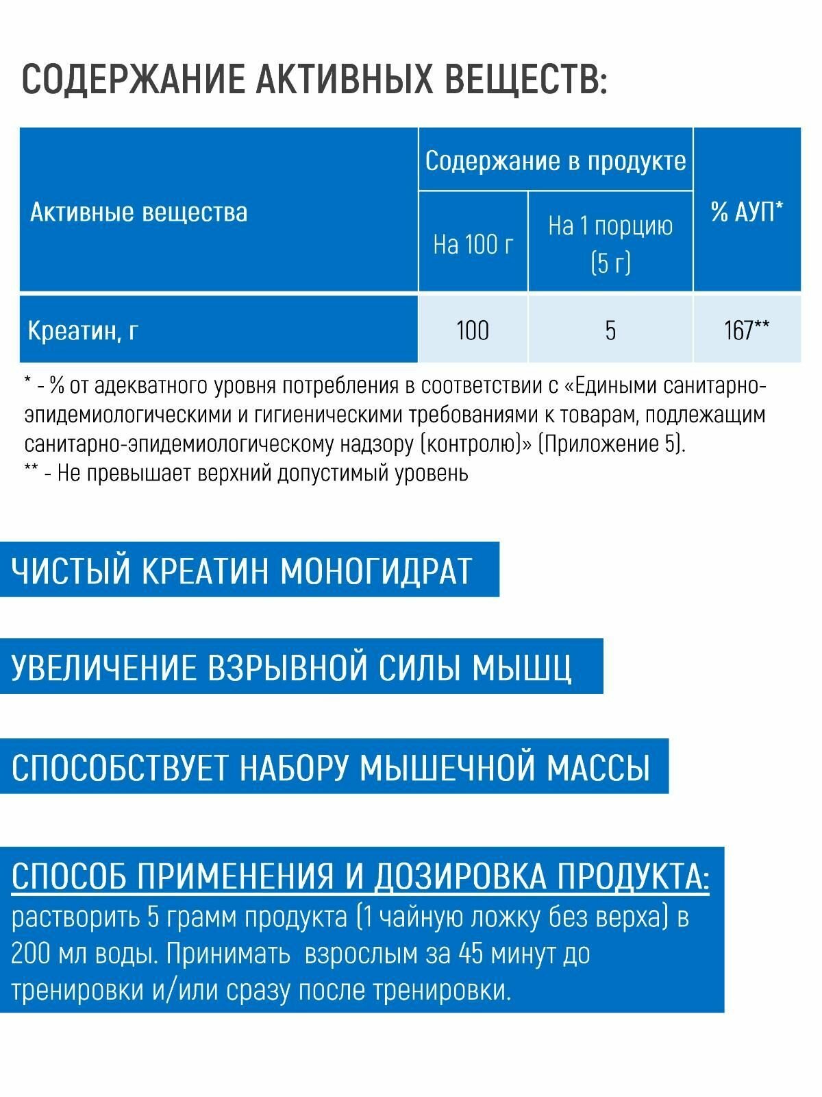| Форма креатина | креатин моногидрат |