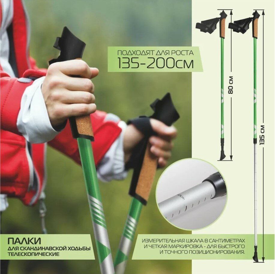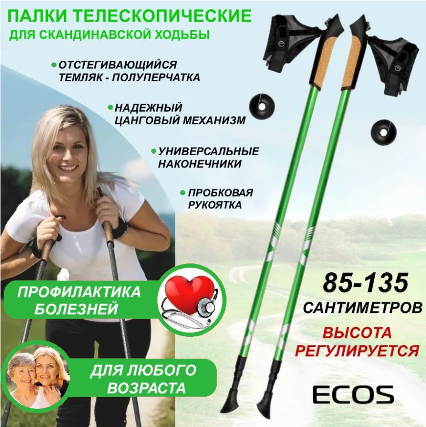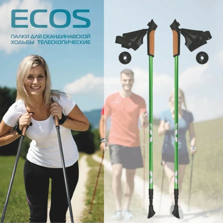 Палки для скандинавской ходьбы Ecos телескопические, AQD-B015 зеленый (комплект 2 шт)