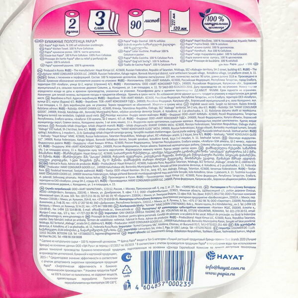 | Плюсы: | Бумажные полотенца Papia®. 4 трёх слойных рулона. Елабуга. HAYAT. Удобные одноразовые полотенца - многоцелевые. ??? |