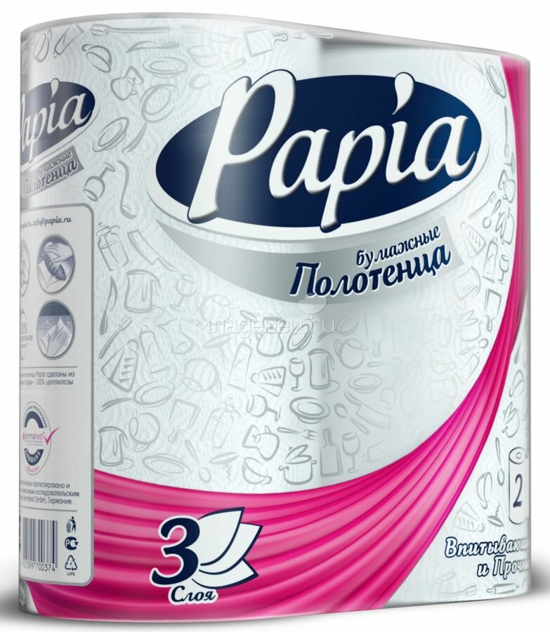 Papia Бумажные полотенца 3 слоя, 2 шт