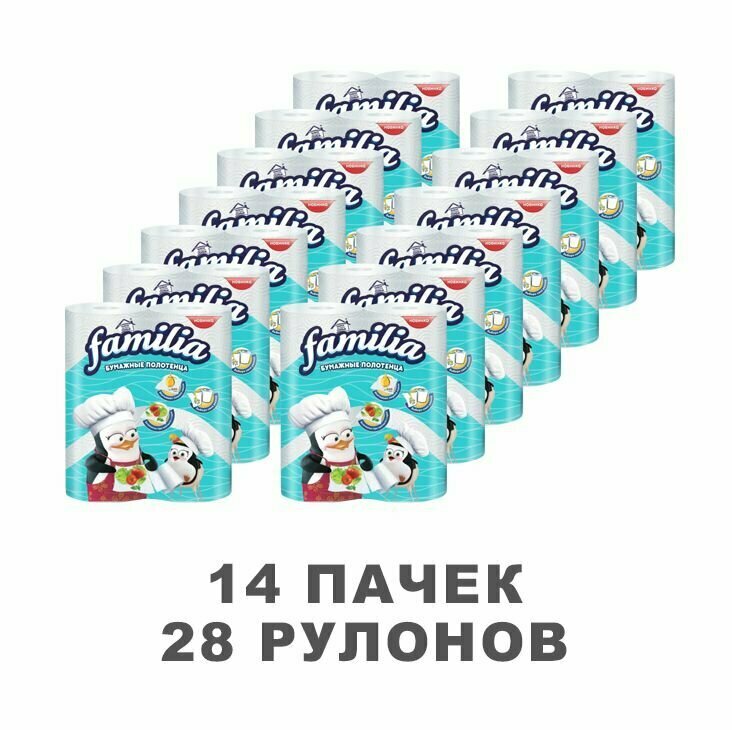 Полотенца бумажные в рулоне "Familia" 2 слоя, 28 рулонов