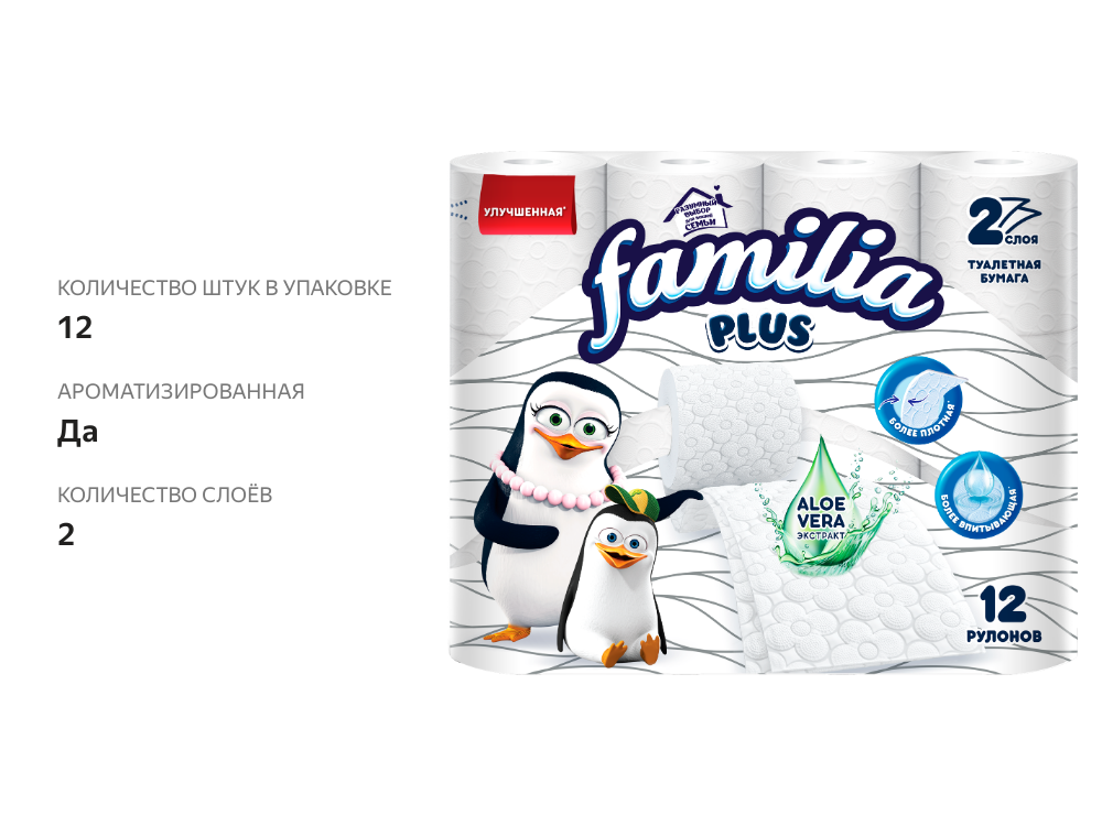 Купить Бумага туалетная FAMILIA PLUS белая 2сл 12рул/уп