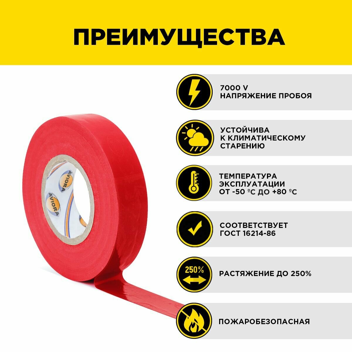 AVIORA Изолента профессиональная ПВХ 19мм х 20м красная 305-032