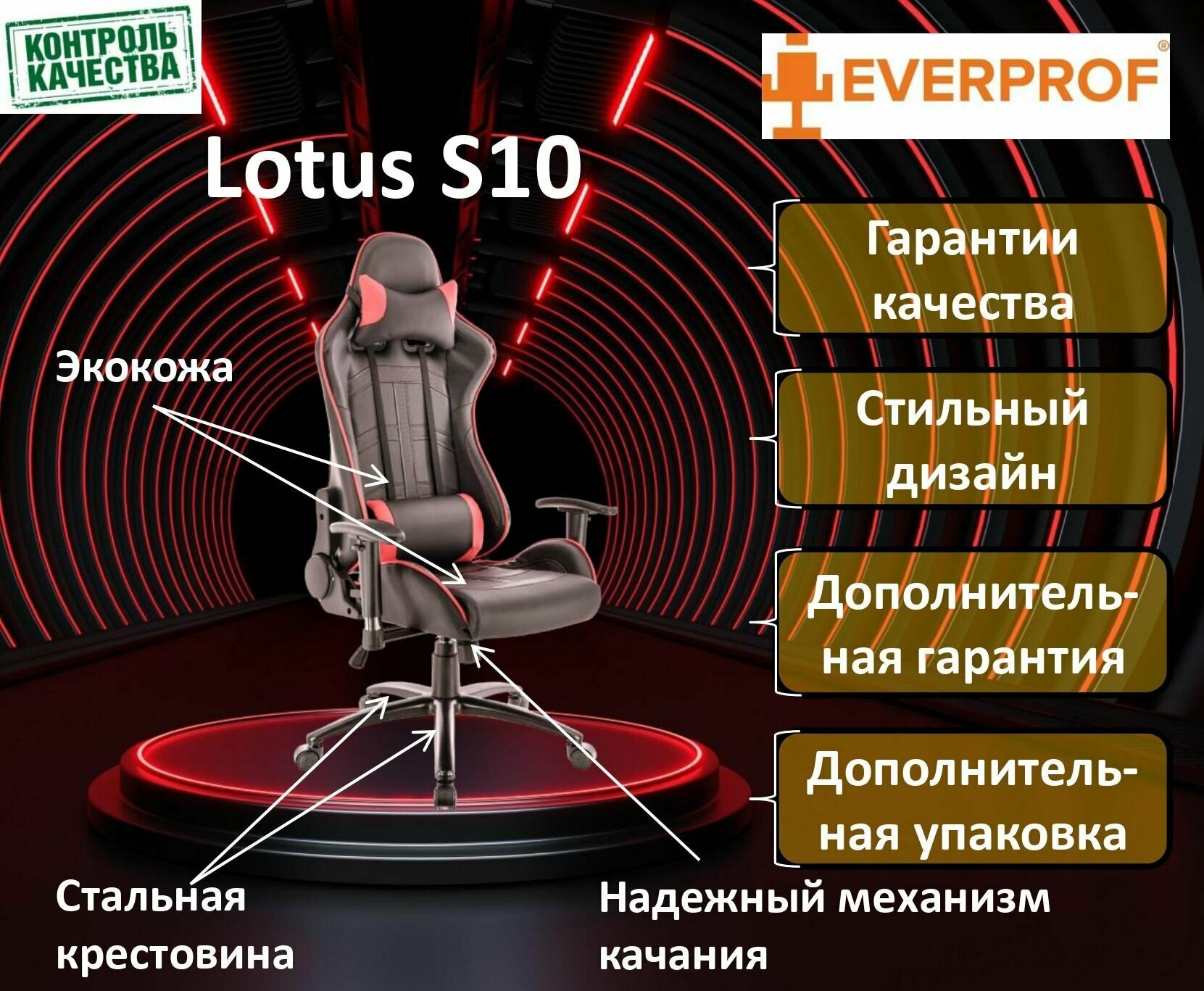 EVERPROF кресло геймерское Lotus S10 экокожа - черно-красное
