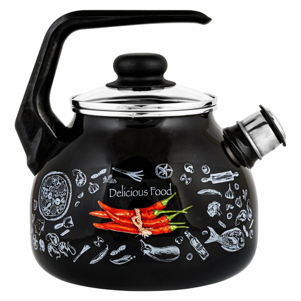 Купить Чайник сталь, эмалированное покрытие, 3 л, со свистком, ручка пластиковая, Appetite, Chilli, черный, 4с209я