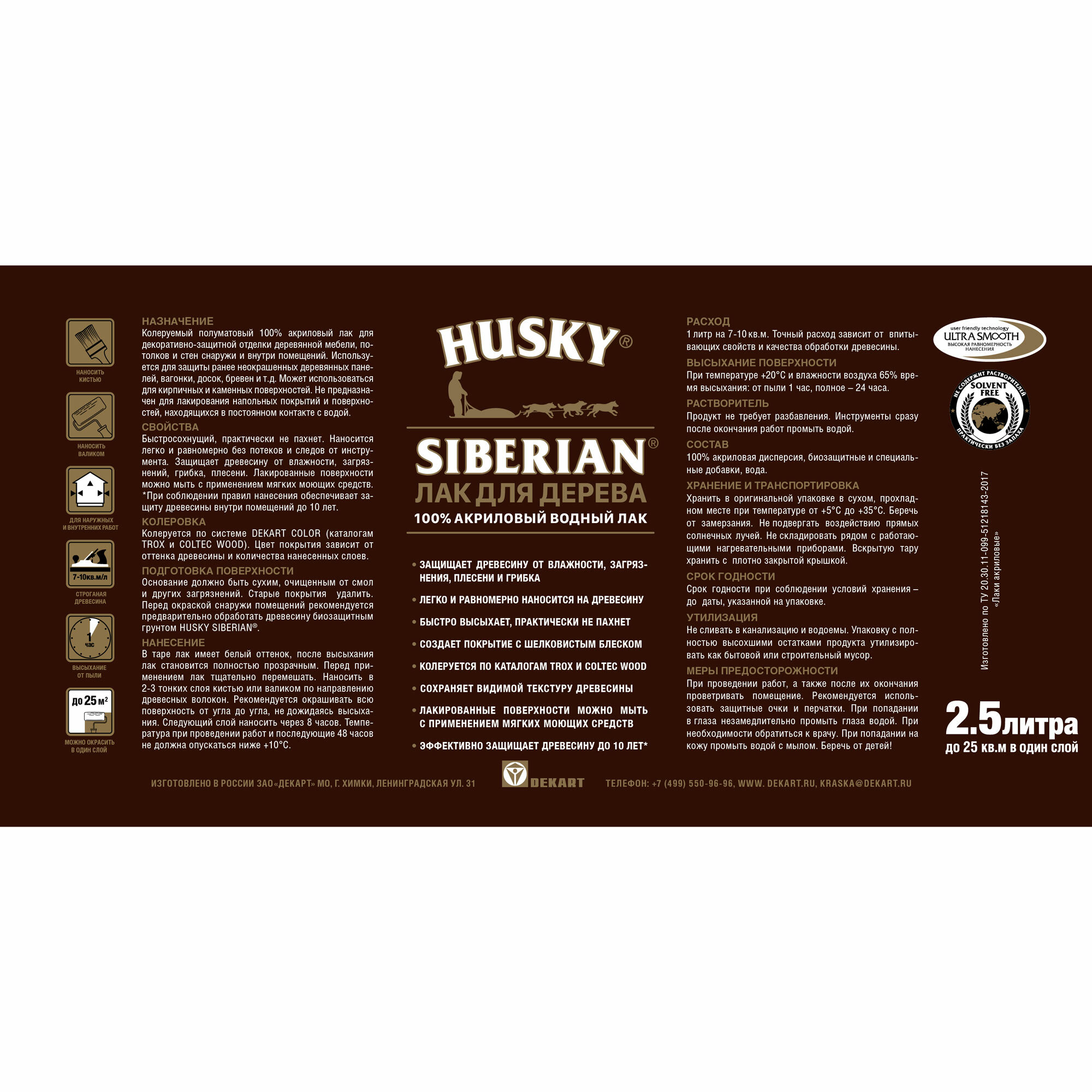 Лак HUSKY Siberian Аквалак бесцветный, полуматовая, 2.5 л интересное: