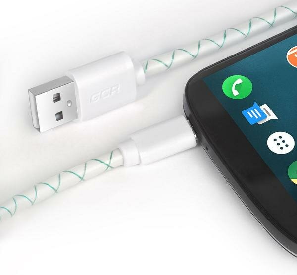 Кабель USB micro быстрая зарядка для телефона micro USB 3A 1.5м GCR бело-зеленый