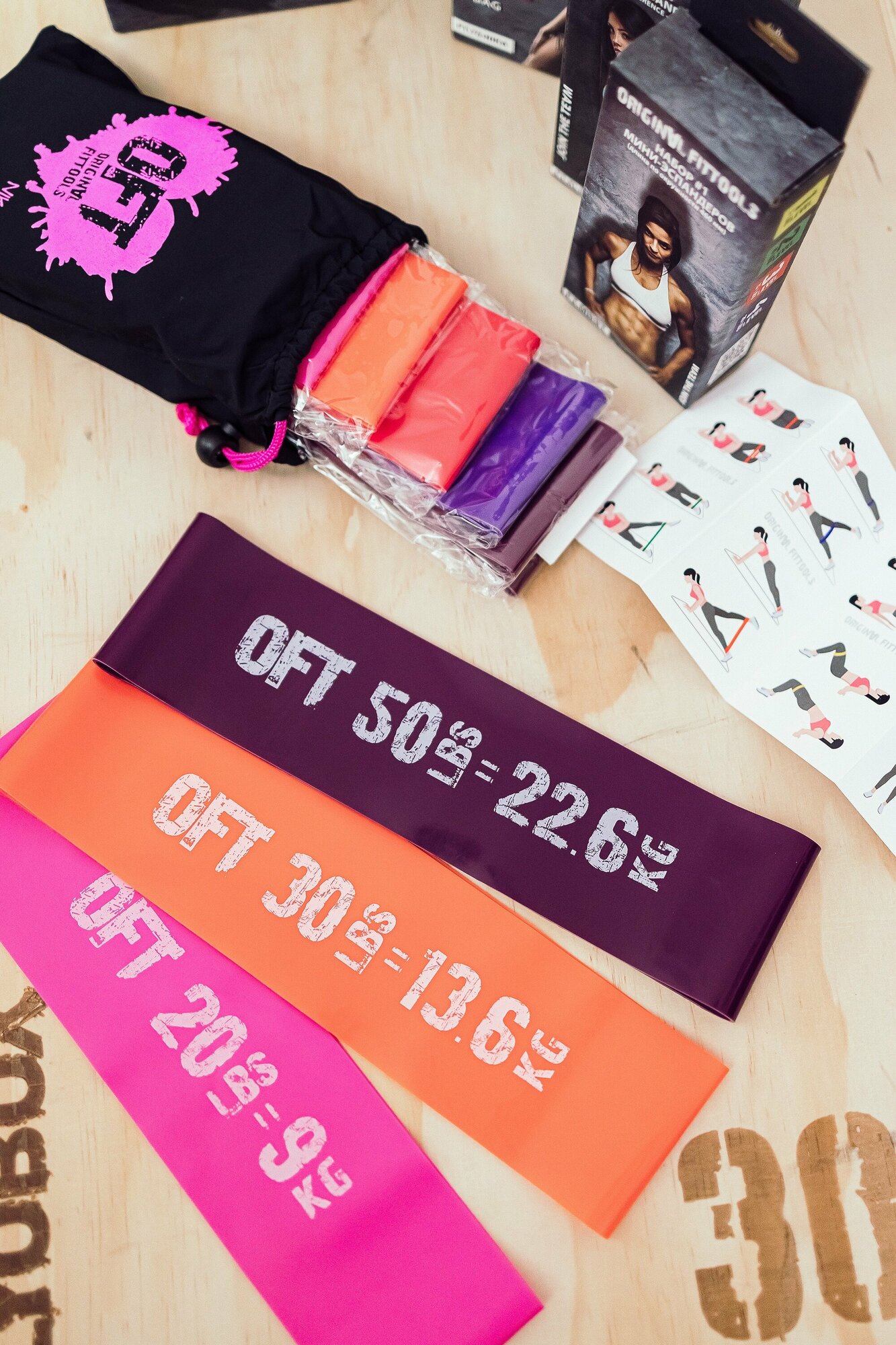 Набор мини-эспандеров ORIGINAL FIT.TOOLS FitTools широких 9, 13.6 и 22.6 кг (3 шт.)