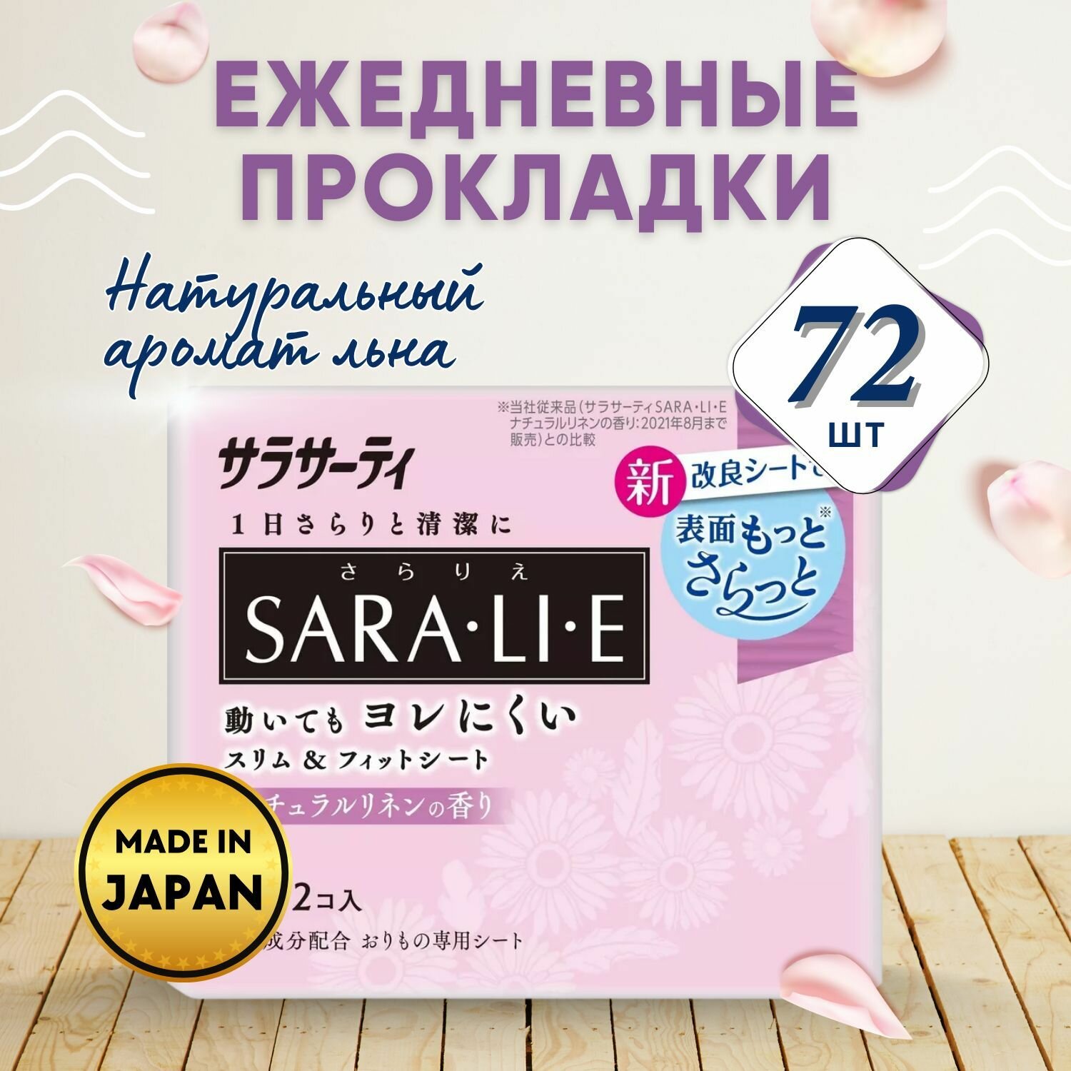 Ежедневные гигиенические прокладки KOBAYASHI Saralie Natural Linen, с ароматом натурального льна, 72шт.