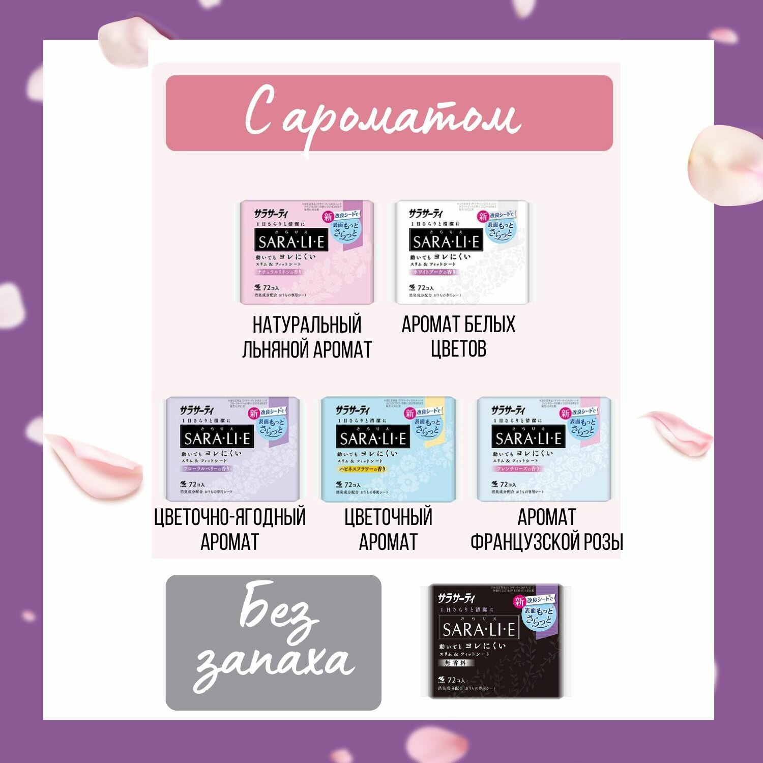 KOBAYASHI Sara-li-e Прокладки ежедневные c ароматом натурального льна Sarasaty Happiness Flower 72шт
