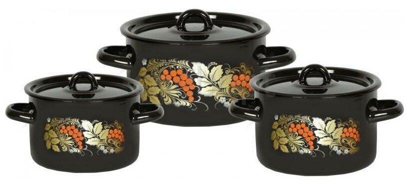 Набор кастрюль Стальэмаль Жостово 1С112 black