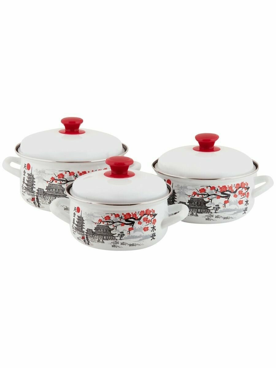 Набор посуды эмаль 3ПР ветка САКУРЫ-1 сфер (1,5л,2л,3л) КМЗ