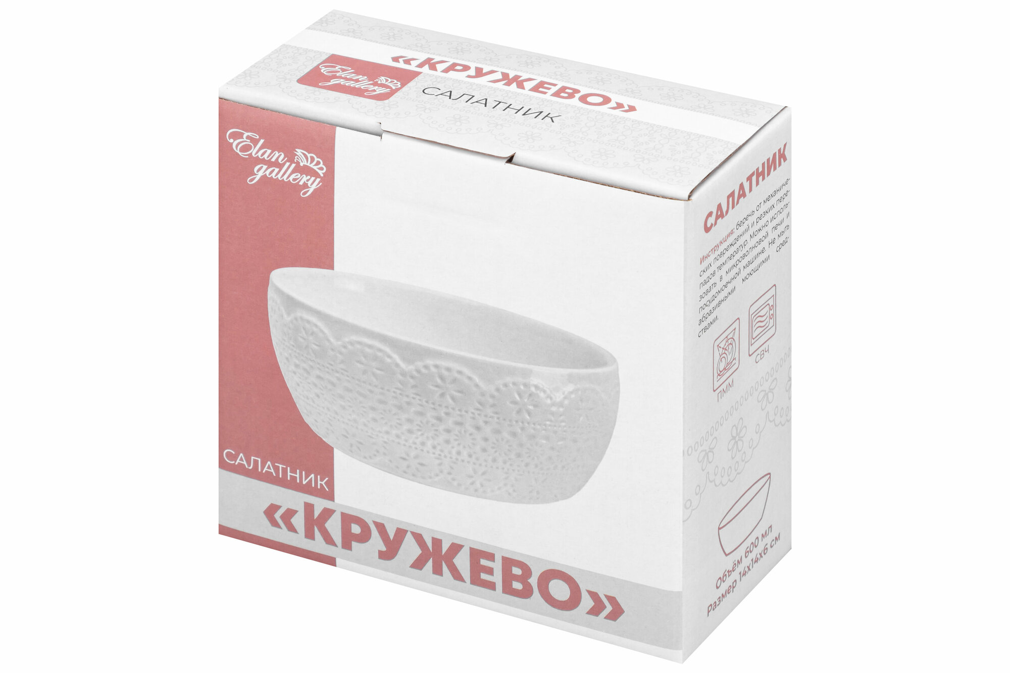 Салатник Elan Gallery 600 мл 14х14х6 см Кружево