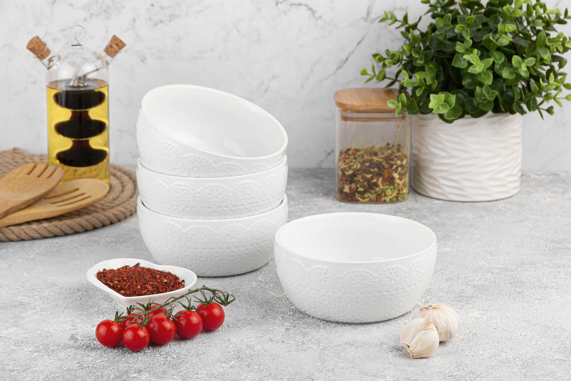 Салатник Elan Gallery "Кружево", 14x14x6 см, 600мл, фарфор, белый