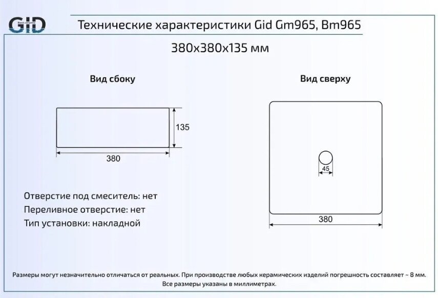 Ниже Вы можете прочитать отзывы на Раковина накладная (38,5х38,5) Gid Gm965, ознакомится с подробными характеристиками, посмотреть интересные обзоры и фотографии на Раковина накладная (38,5х38,5) Gid Gm965.