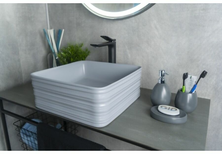 Накладная раковина серая 38x38х13.5 см, Gid, Gm965