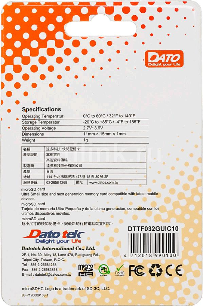 Ниже Вы можете прочитать отзывы на Карта памяти microSDHC UHS-I DATO 32 ГБ, 80 МБ/с, Class 10, DTTF032GUIC10, 1 шт., без адаптера, ознакомится с подробными характеристиками, посмотреть интересные обзоры и фотографии на Карта памяти microSDHC UHS-I DATO 32 ГБ, 80 МБ/с, Class 10, DTTF032GUIC10, 1 шт., без адаптера.