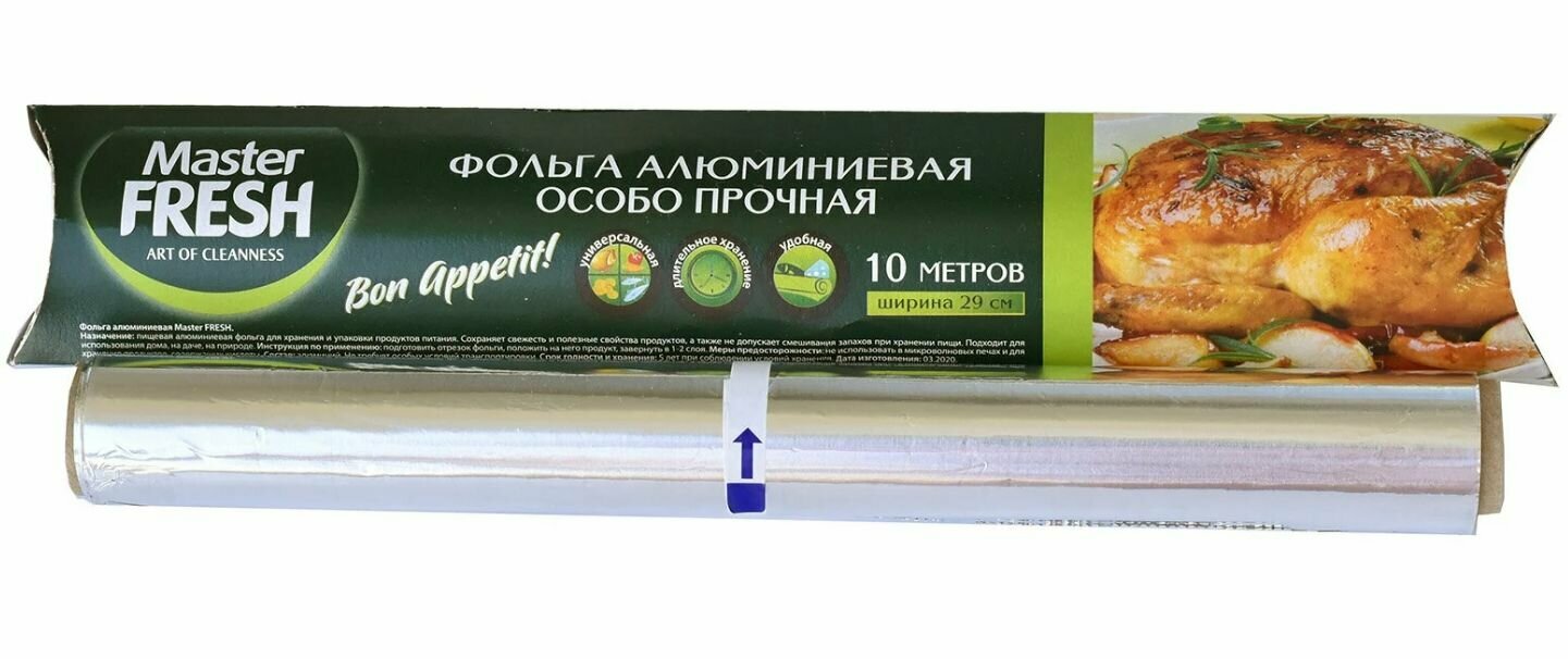 Фольга алюминиевая Master FRESH 10 метров, 11 мкм картонная коробка интересное: