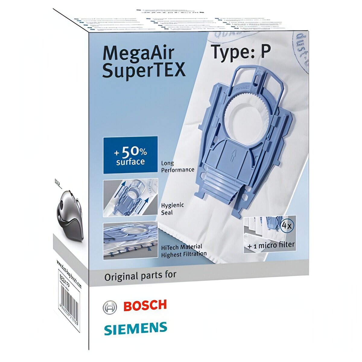 Мешки-пылесборники BBZ41FP для пылесосов Bosch серии BSG8, тип "P" MegaAir SuperTEX с 1 сменным микрофильтром
