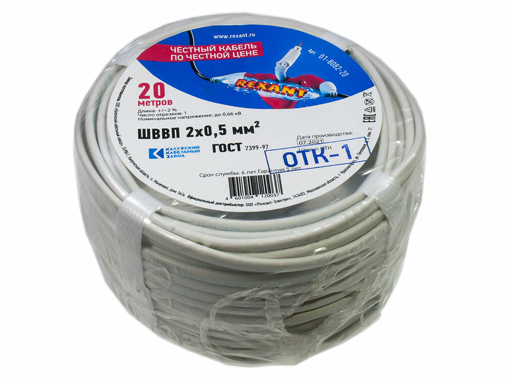 Провод Шввп 2х0,5 мм?, длина 20 метров, Гост 7399-97 Rexant 01-8082-20 .