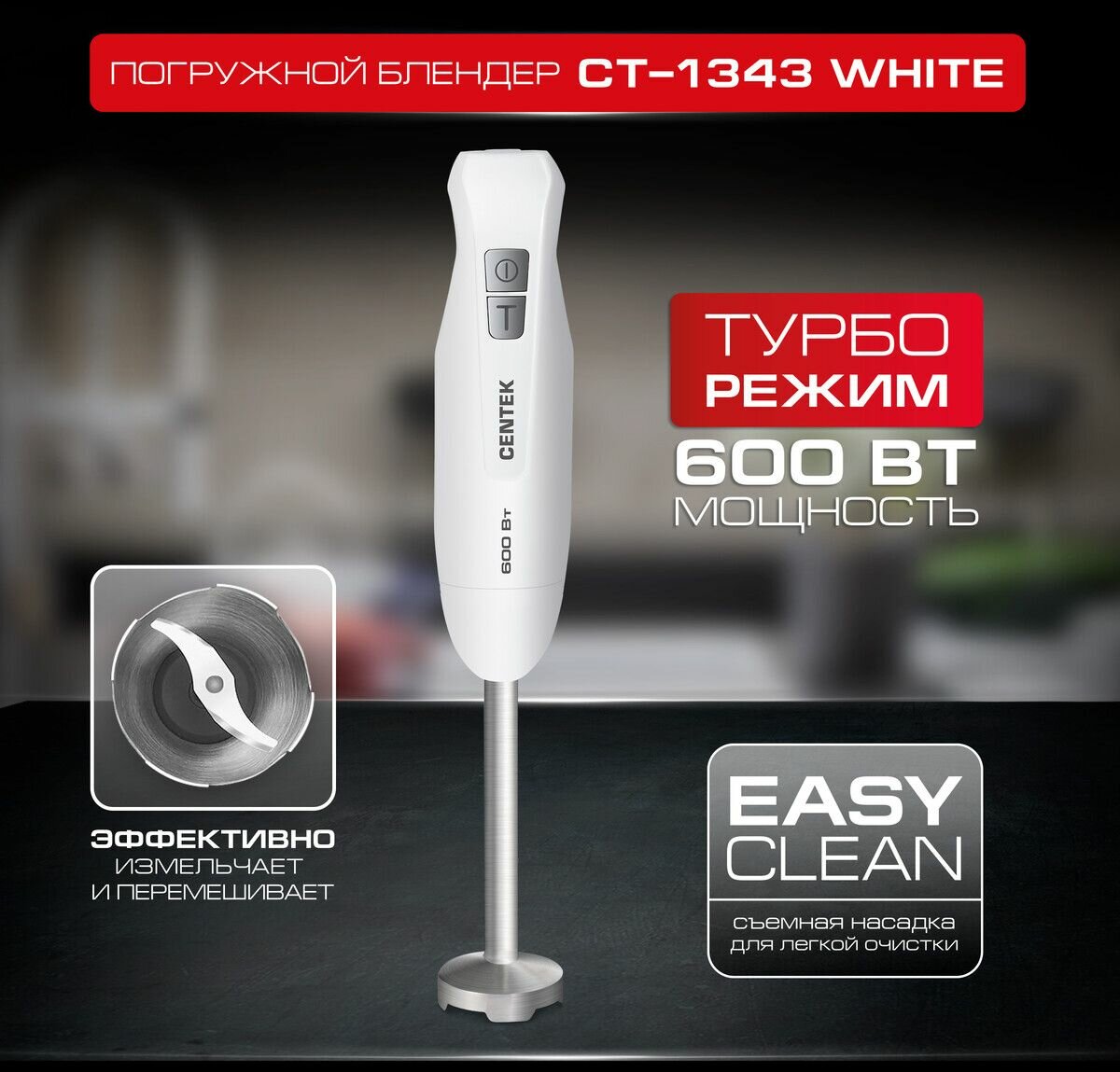 Блендер Погружной 600ВТ 1ПРЕДМЕТ 2СК Турбо МЕТ Нога БЕЛ Centek .