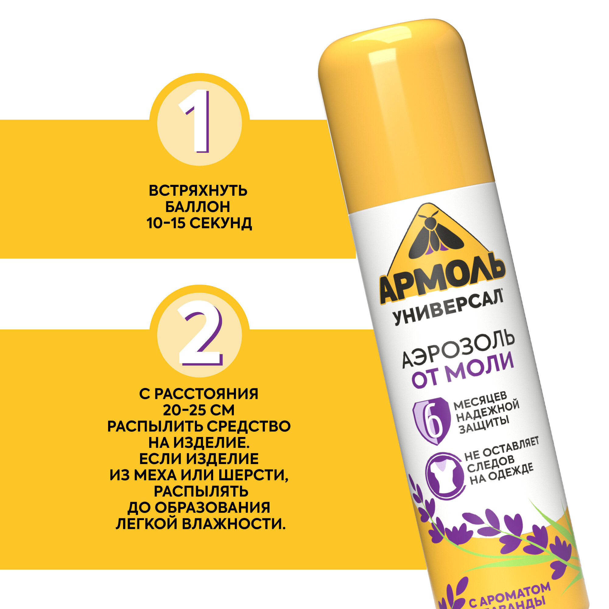 Аэрозоль Армоль от моли с ароматом лаванды, 133 г, 140 мл