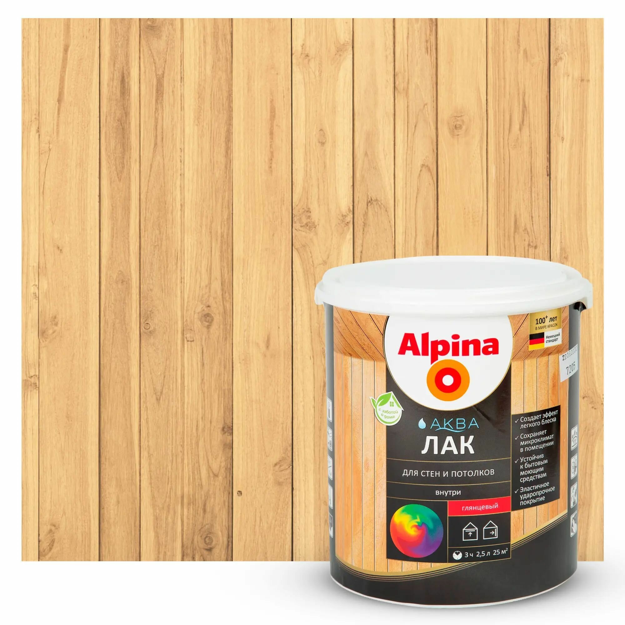 Альпина Аква лак акриловый для стен и потолков глянцевый колеруемый (2,5л) / ALPINA Aqua лак акриловый для стен и потолков на водной основе глянцевый