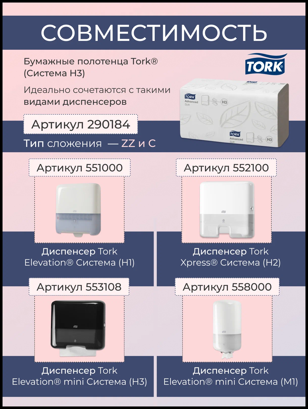 Полотенца бумажные Tork для держателей, H3, Advanced, ZZ-сложения, 2 слоя, 200 листов, 20 шт