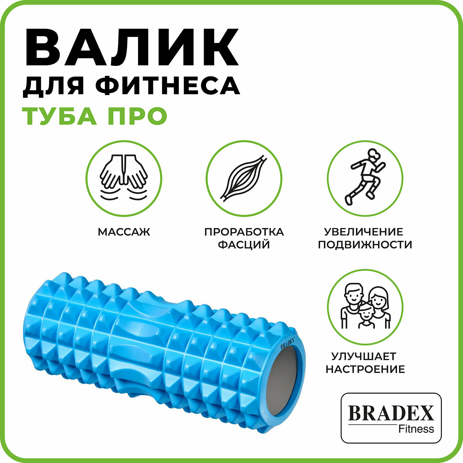 Валик для фитнеса Bradex туба про массажный, бирюза