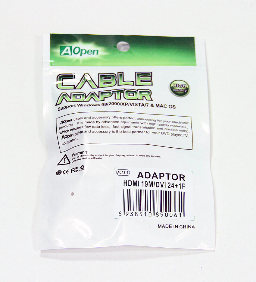 Переходник DVI 25F - HDMI 19M AOpen ACA311 .