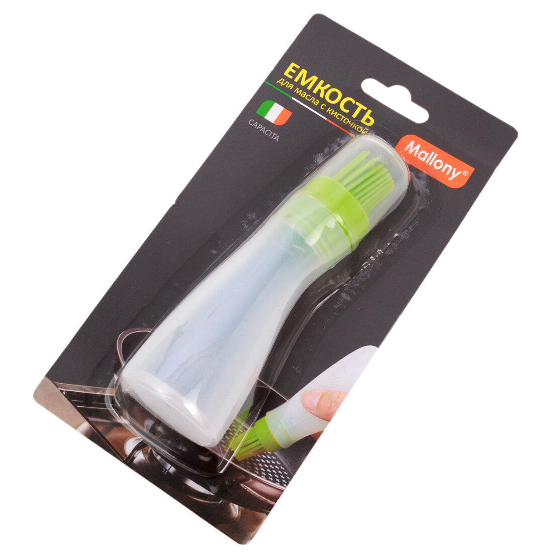 Ёмкость для масла с кисточкой Mallony CAPACITA 00179713х13х4см пластик/силикон белый/зелёный