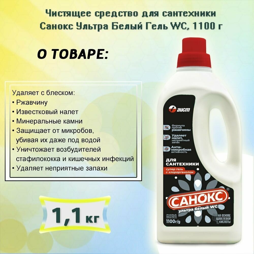 Гель WC для чистки унитазов санокс ультра Белый и других сантехнических изделий 1100мл