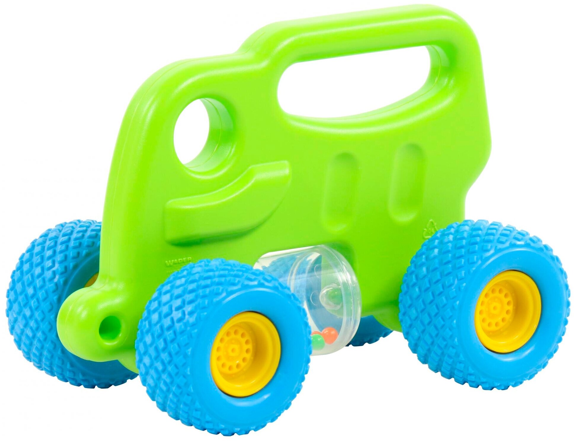 | Отзыв: | Отличная игрушка, которую можно катать. Сын любит общупывать колеса, они из очень приятного материала и играть с погремушкой, которая находится на машинке. Легко мыть. |