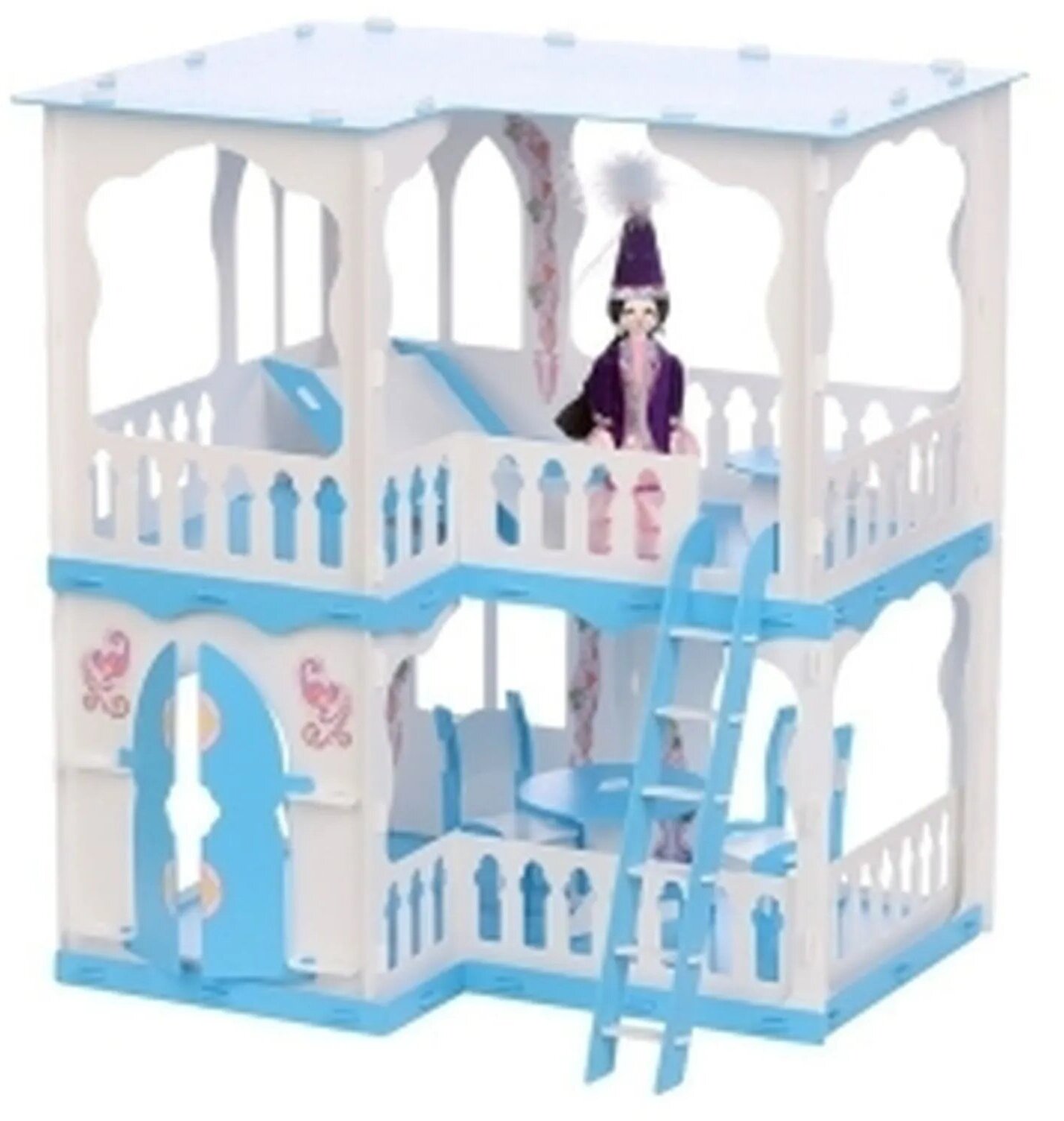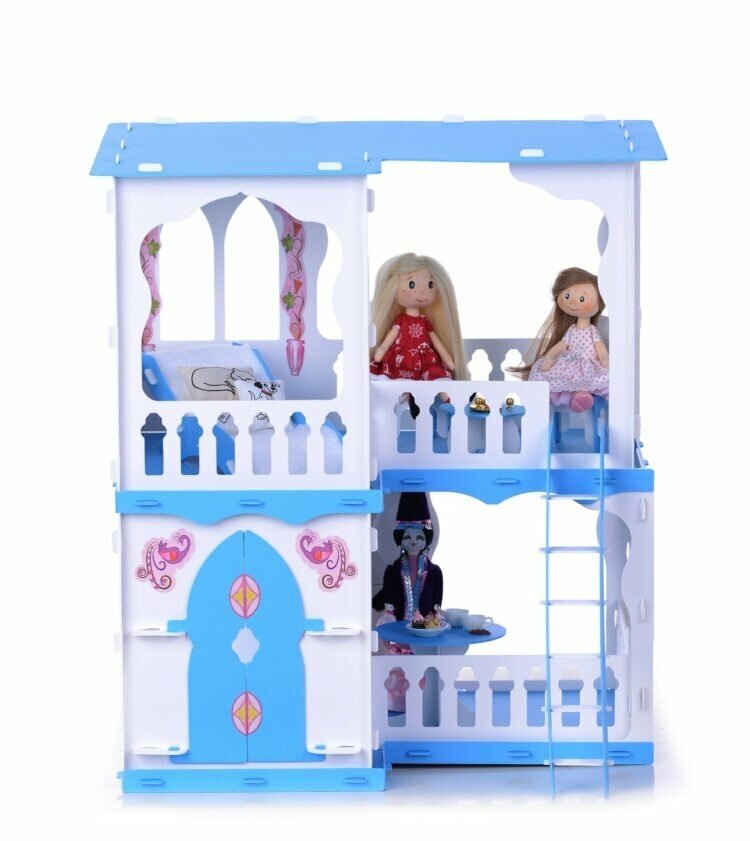 Домик для кукол Krasatoys Дом Алсу для кукол бело-голубой с мебелью